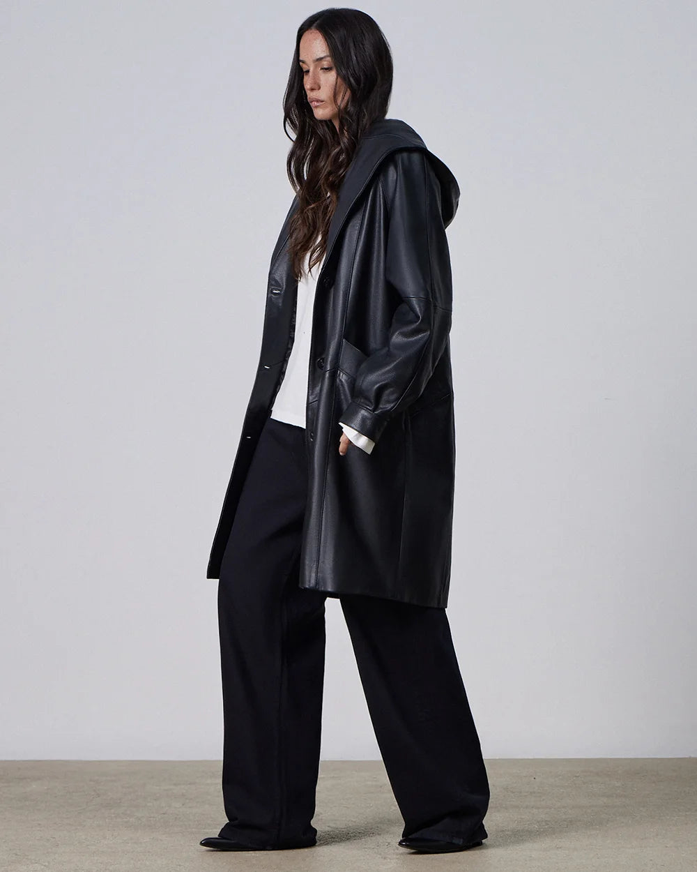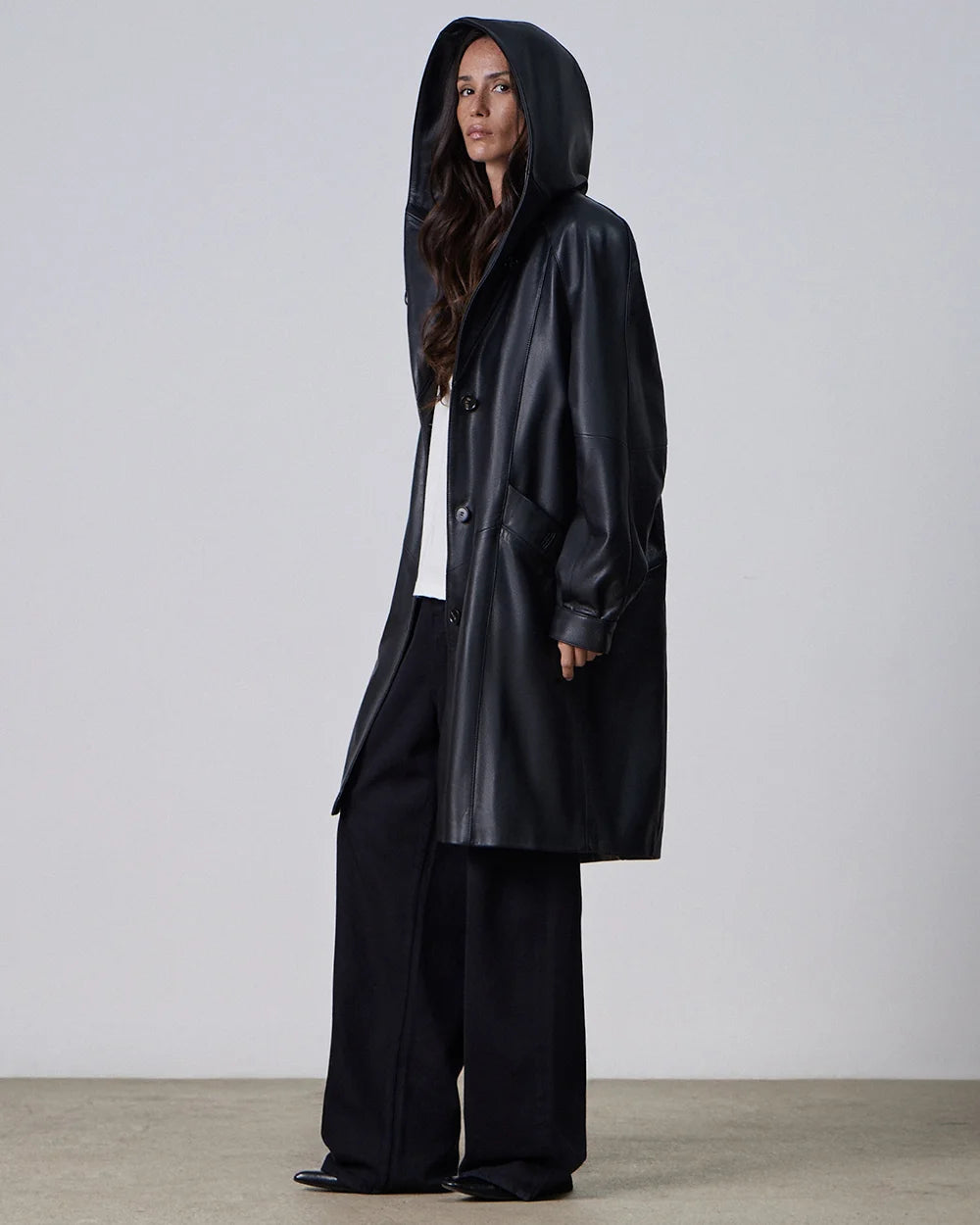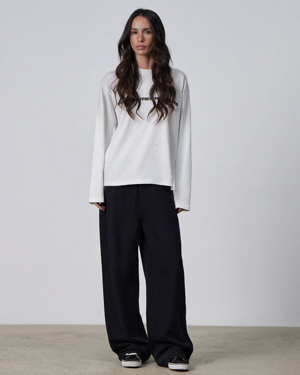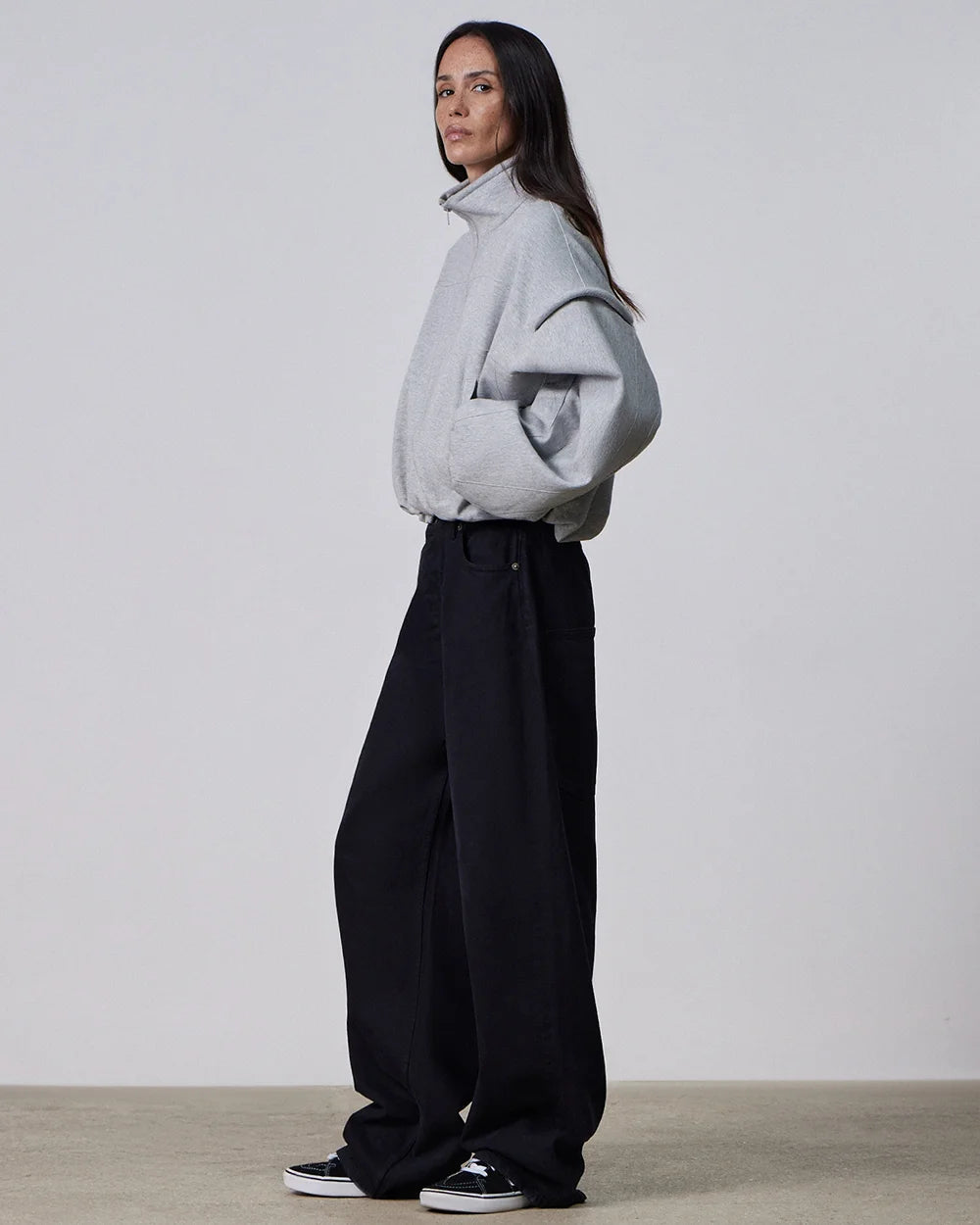 Wide straight-leg jeans in black with large patch pockets. Crafted from dense premium denim, they feature an elongated silhouette that falls in soft folds over the shoes. The cut easily integrates into a core wardrobe and pairs effortlessly with any top.