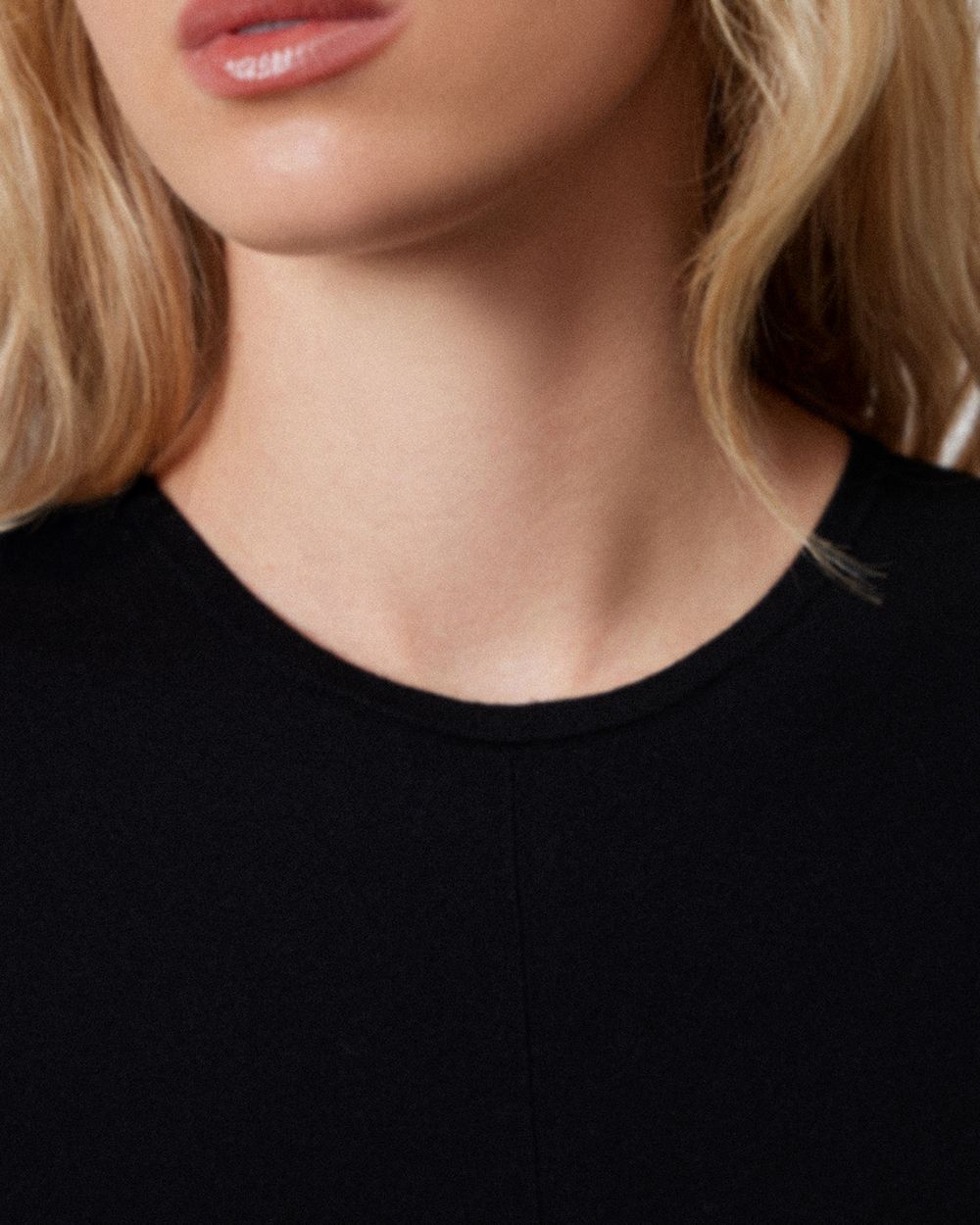 A basic fitted jumpsuit crafted from a fine viscose blend. It follows every contour of the body, creating a “second-skin” effect. The lightweight, ultra-soft fabric allows complete freedom of movement and adapts comfortably to any temperature: wear it solo in warm weather or as part of layered outfits in the colder months. The versatile black shade paired with the minimalist design makes this jumpsuit an effortless addition to any wardrobe.