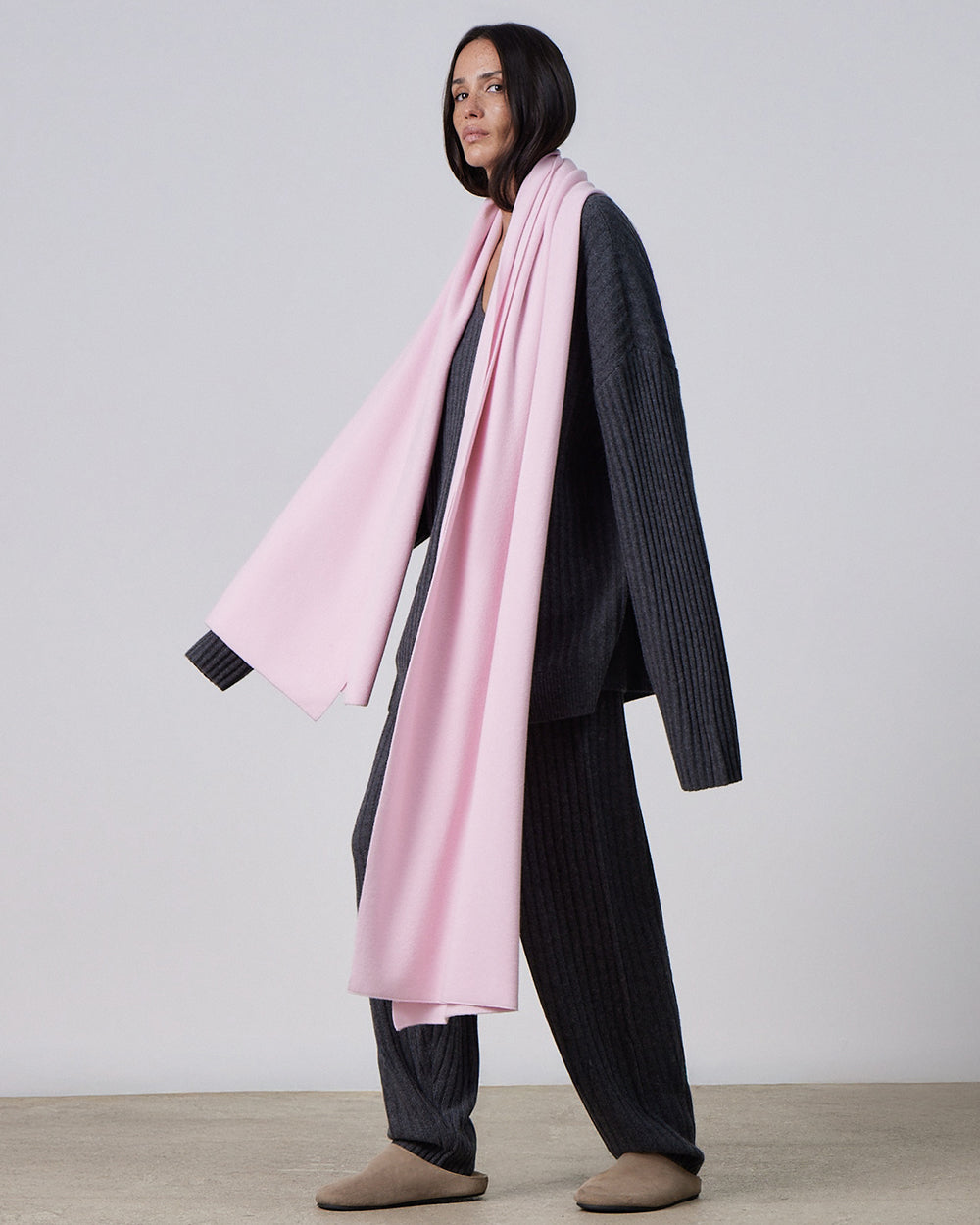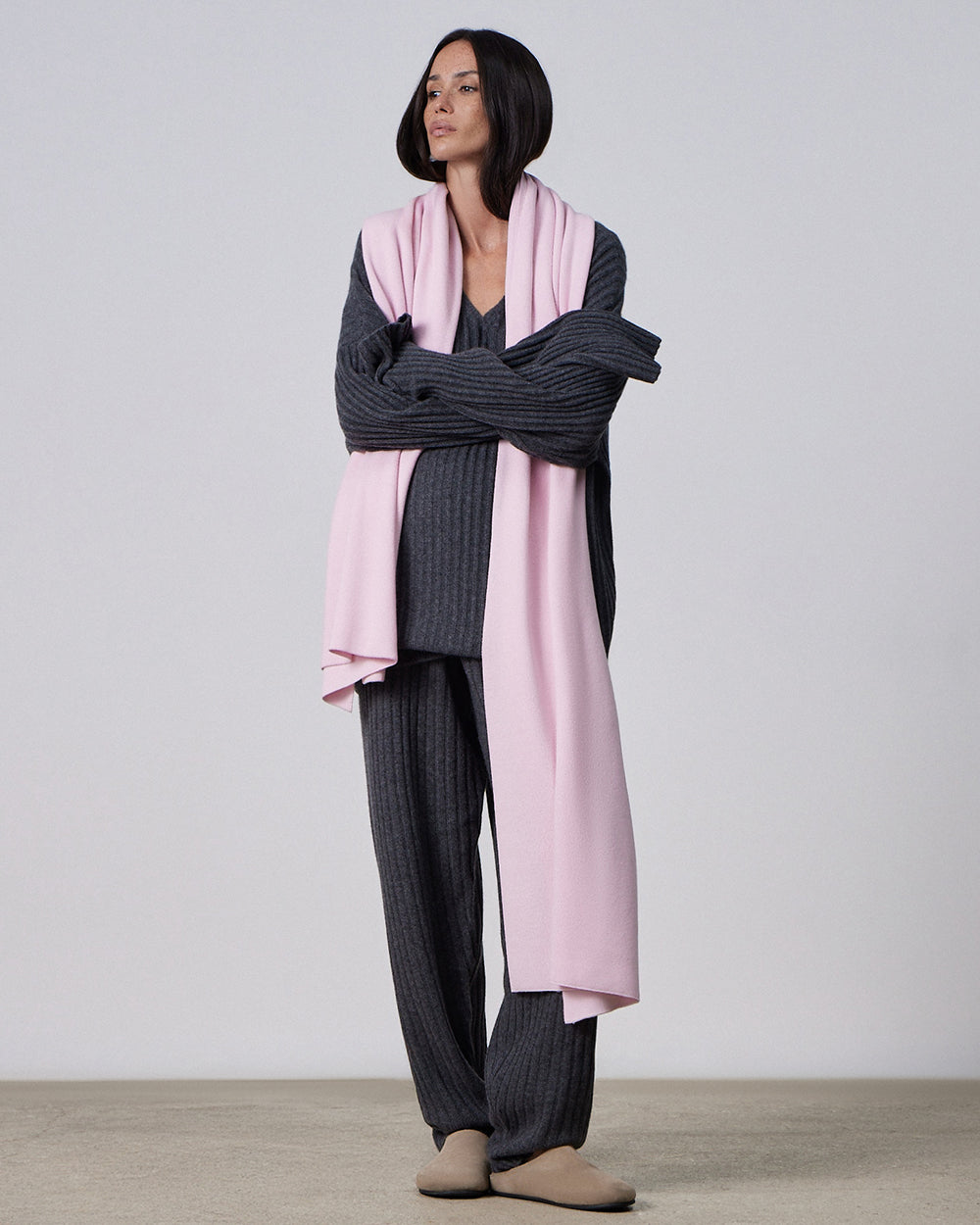 A long, dark grey cashmere sweater knitted in wide ribbing. Its straight cut, deep V-neckline, and extended sleeves without elastic provide a relaxed yet refined look suitable for most occasions. Yarn crafted from premium quality natural cashmire ensures ultimate comfort and maintains optimal temperature even during the coldest weather conditions. It pairs perfectly with dark grey “Gris” pants.