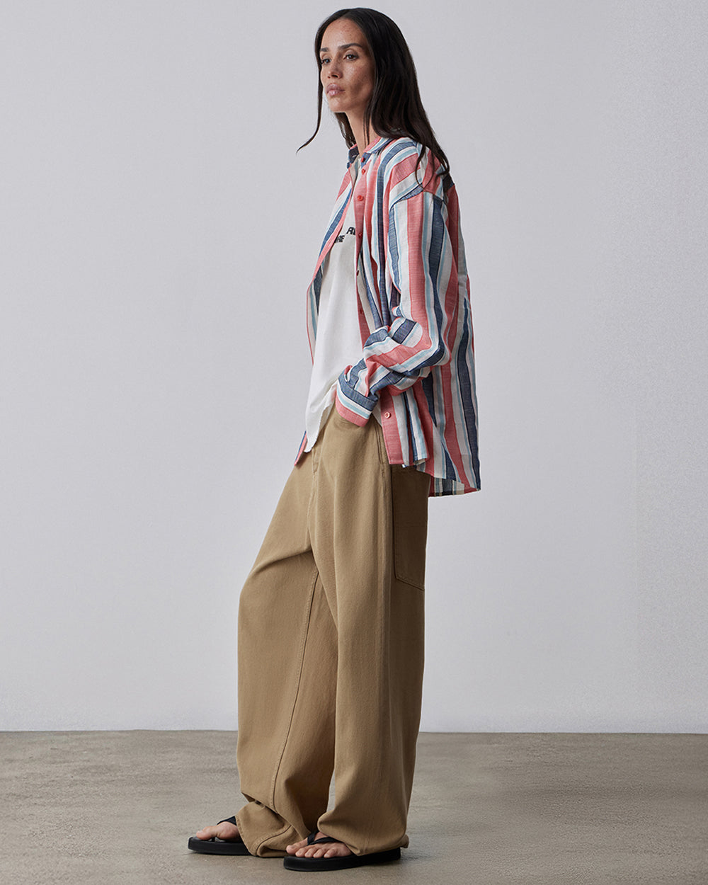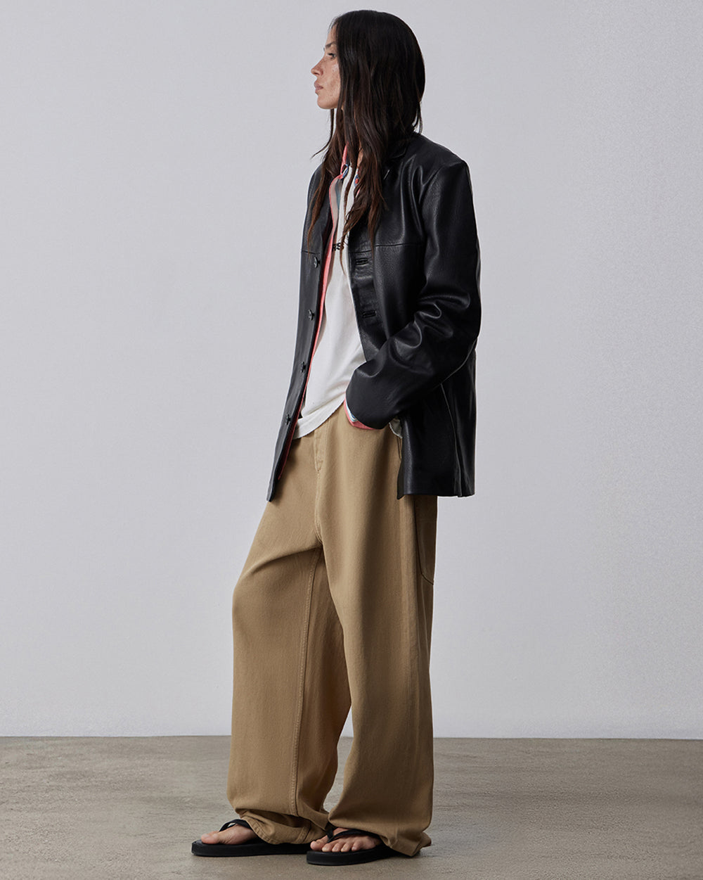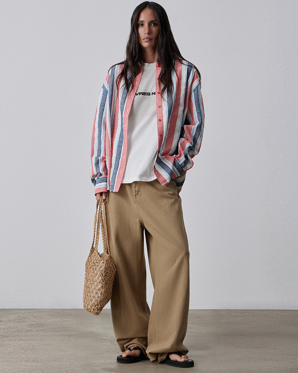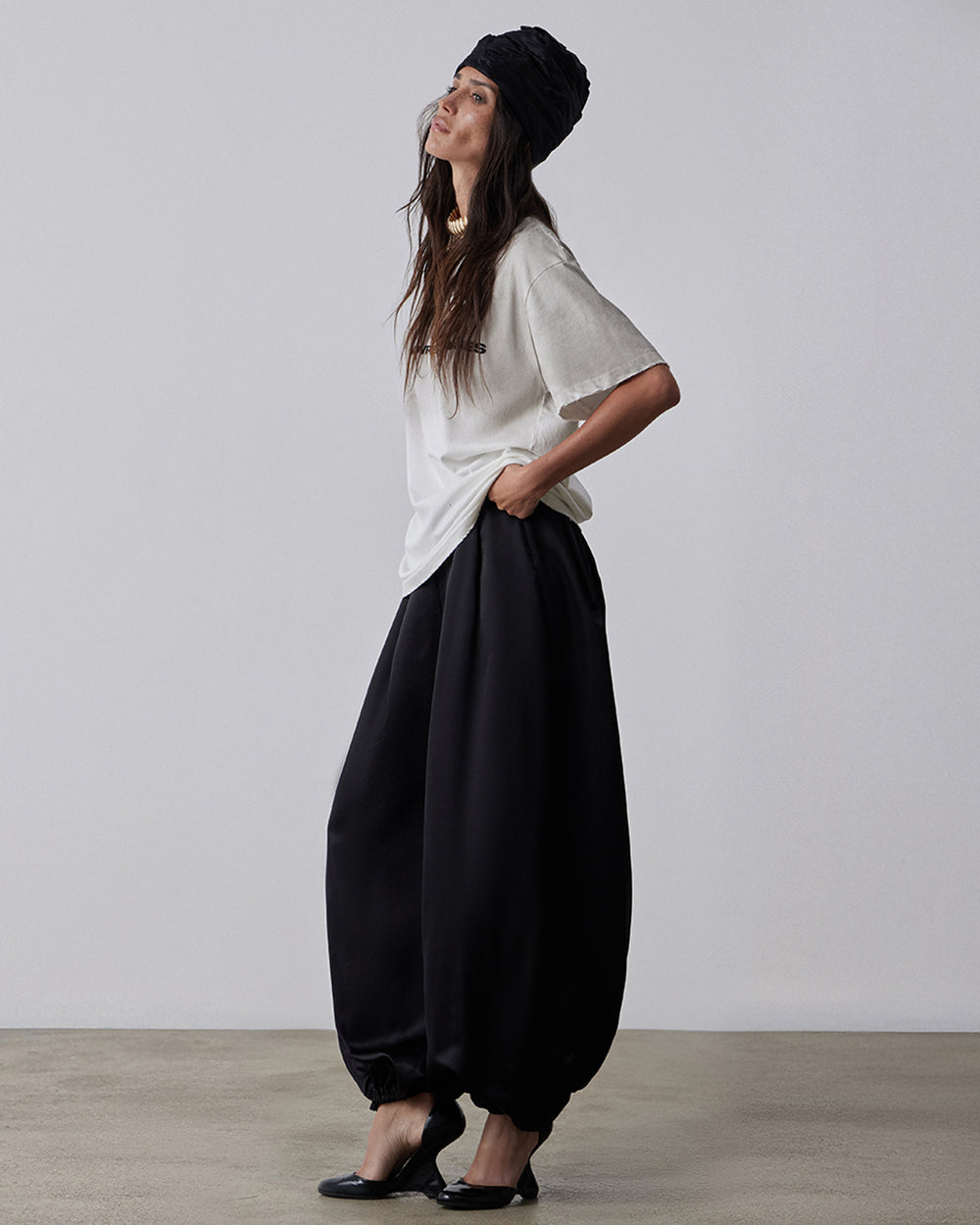 A relaxed cotton t-shirt in a grunge style featuring a gradient white-to-grey print. Lightweight and versatile, this easy-to-wear design fits effortlessly into any outfit, adding a distinctive touch of brightness and recognition. The lettering is raised above the fabric's surface thanks to an innovative application technique that gives it depth and dimensionality. Decorative slits are scattered across the entire garment and along its hems for added visual interest. Each piece may have slight variations in color intensity or contain subtle lighter/darker streaks resulting from our unique dyeing process.