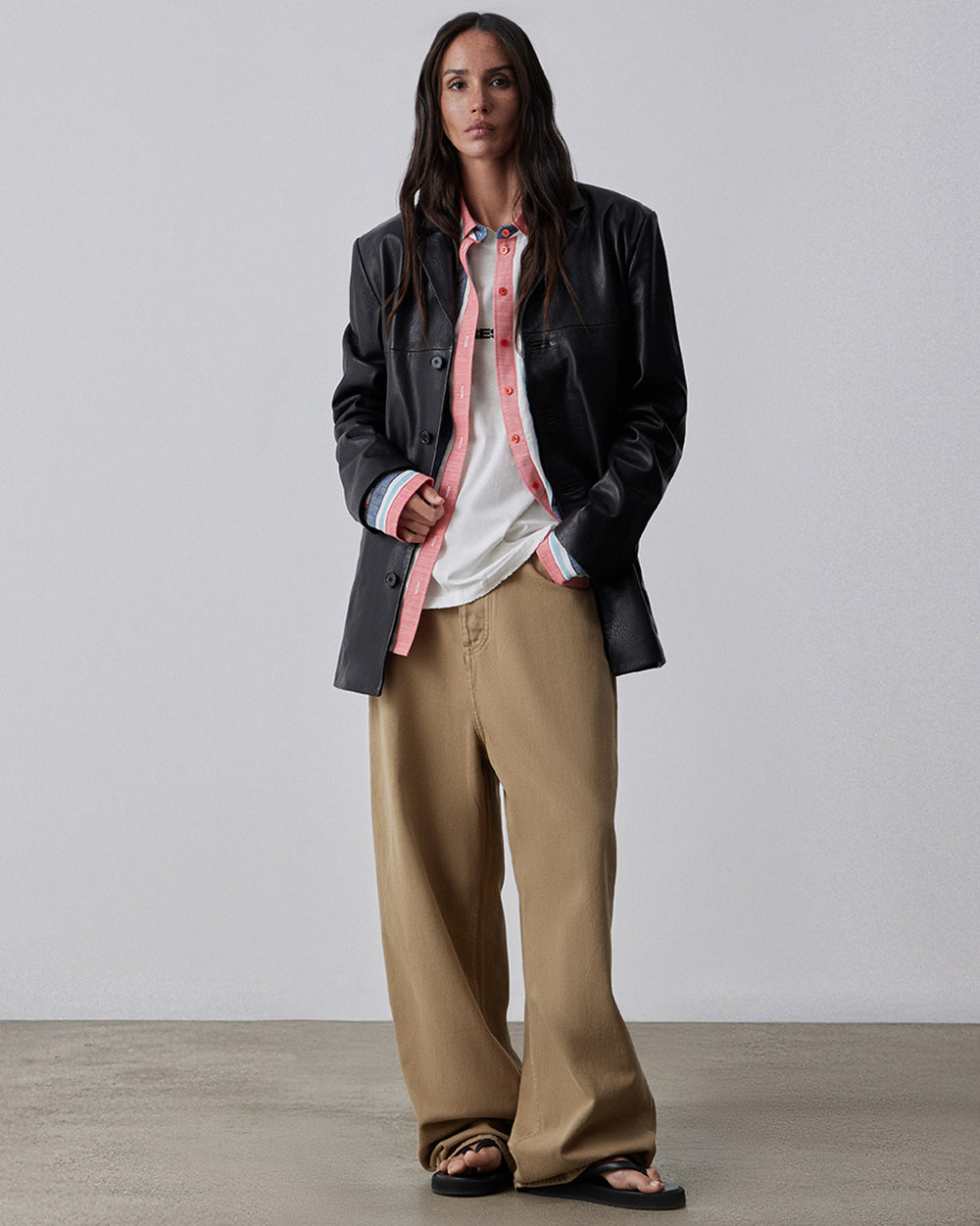 The model is wearing size S, height 174 cm, measurements 83x63x89
